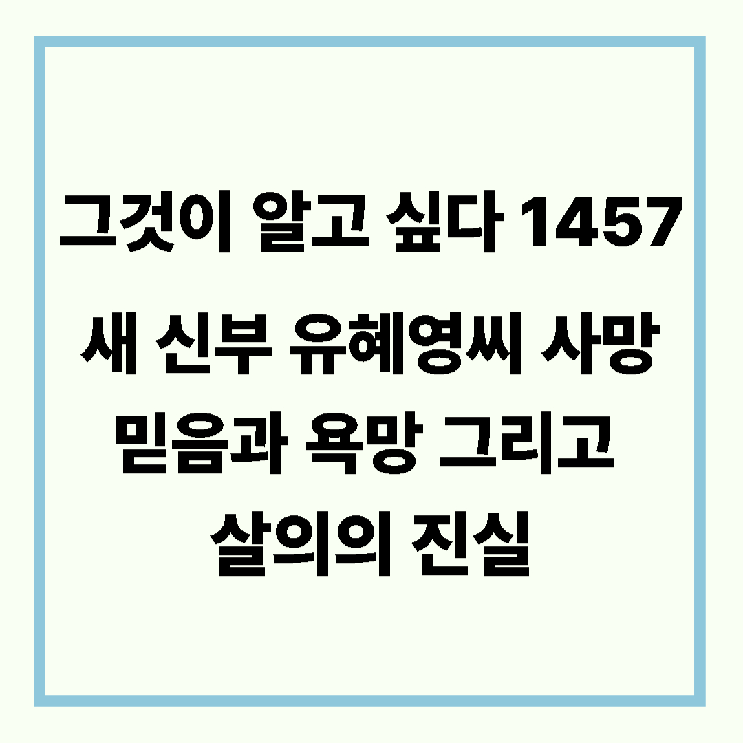 그것이 알고 싶다 1457회 새 신부 유혜영 사망 사건 믿음과 욕망 그리고 살의 진실패션 뷰티 건강 다이어트/생활꿀팁 일상 소식 2025. 8. 31. 12:12반응형