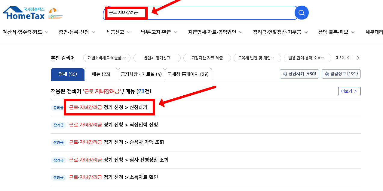- 로그인 → ‘근로·자녀장려금 신청’ 메뉴