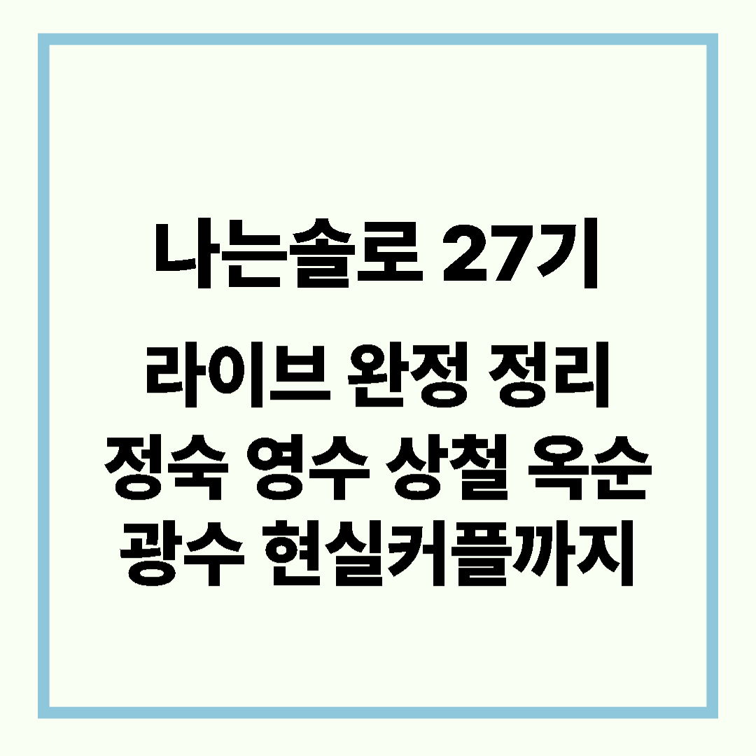 나는 솔로 27기 라이브 완전 정리|정숙·영수·상철·옥순 근황 & 광수 현실 커플 현황패션 뷰티 건강 다이어트/생활꿀팁 일상 소식 2025. 8. 29. 11:39반응형