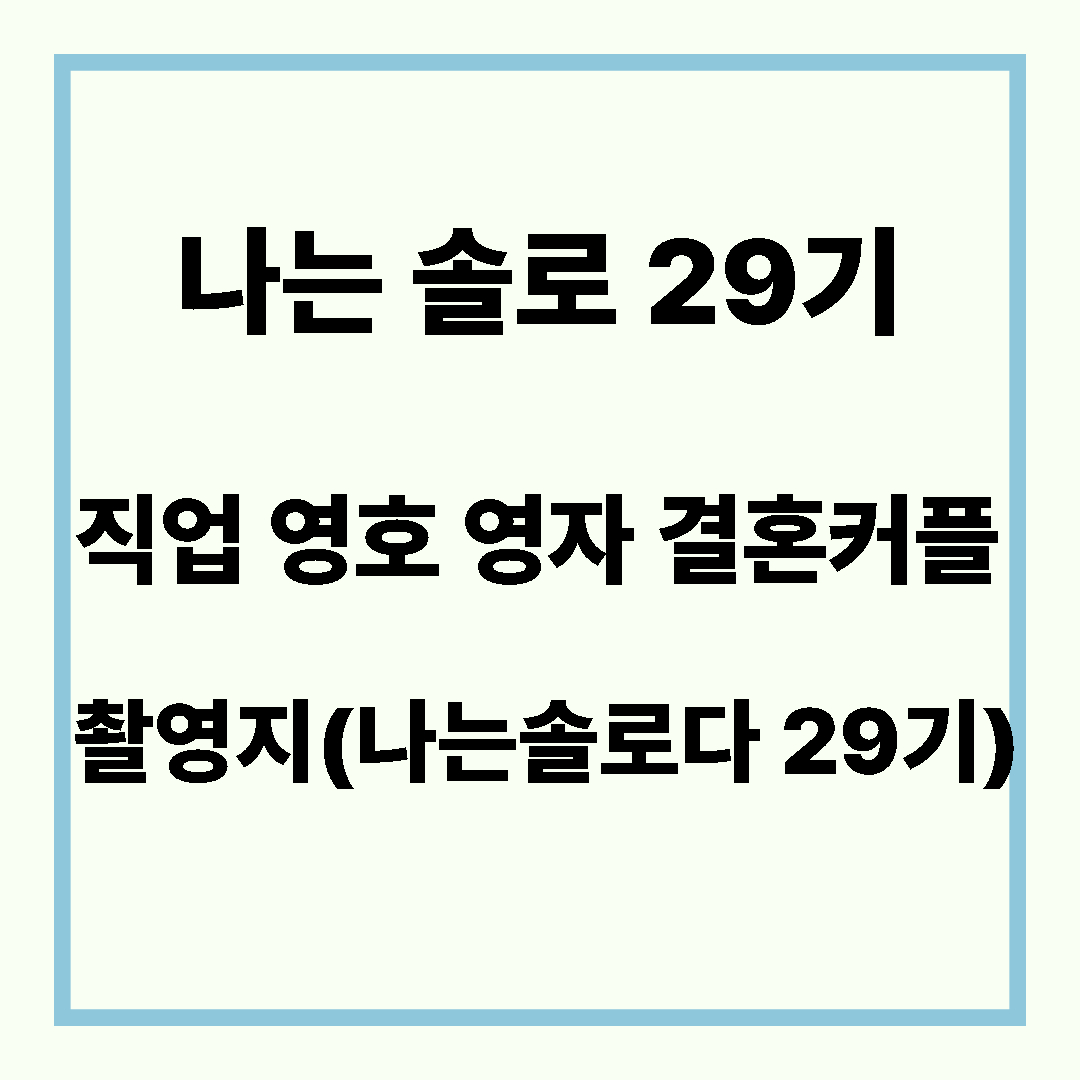 나는 솔로 29기 직업 영호 영자 결혼커플 촬영지(나는솔로다 29기)패션 뷰티 건강 다이어트/생활꿀팁 일상 소식 2025. 11. 28. 11:46반응형