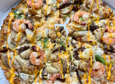 탱글한 새우와 갈릭 버터 소스가 어우러진 풍미 가득한 피자 - 블랙앵거스 스테이크 피자