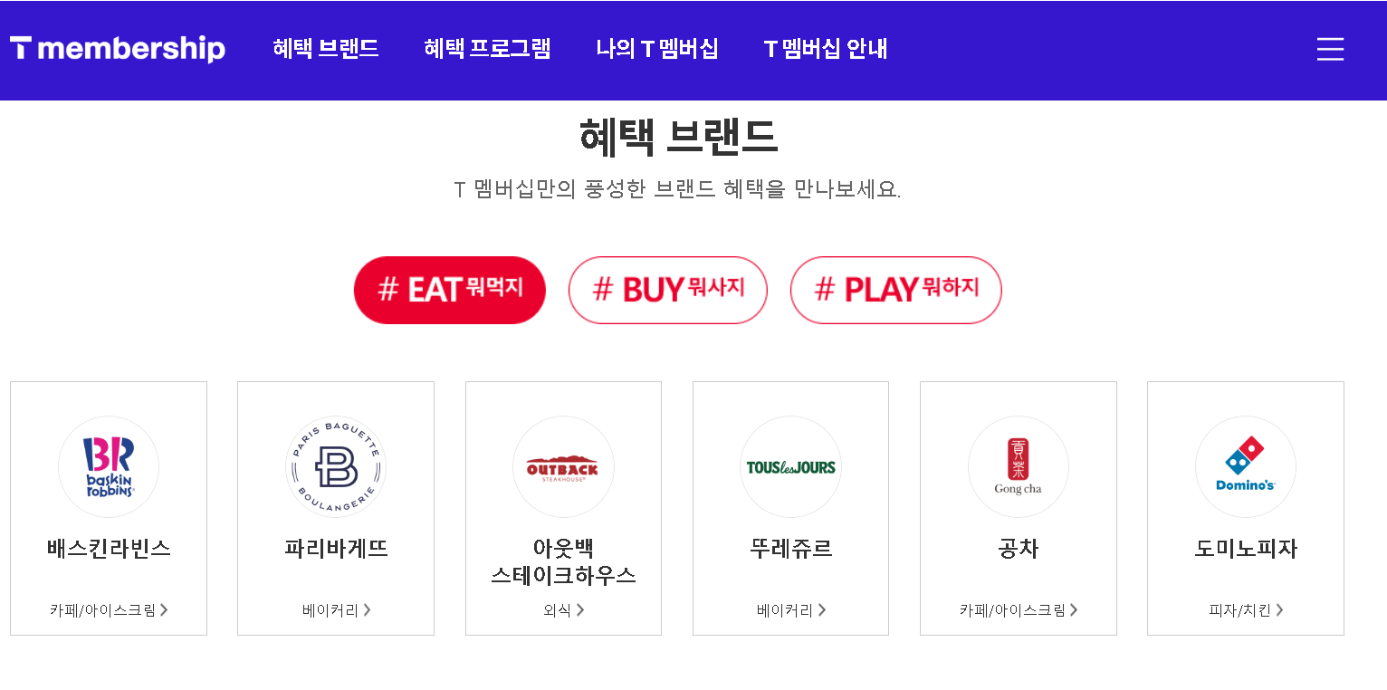 - 혜택은 T 멤버십 앱을 통해 쿠폰 다운로드 후 사용 가능