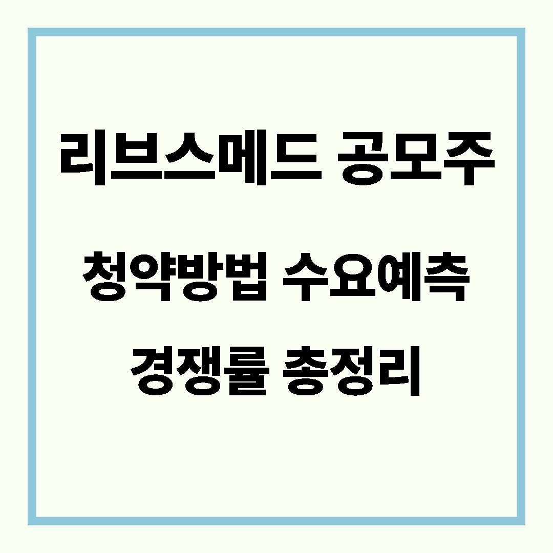 이 글에서는 리브스메드 공모주 청약방법, 수요예측 경쟁률, 투자 시 체크 포인트까지 정리해