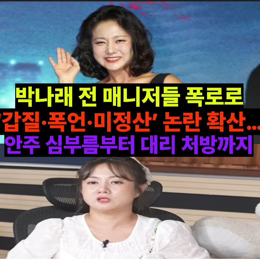 방송인 박나래가 전 매니저들로부터 갑질·상해·대리처방·정산 미지급 등의 의혹이 연이어 제기되며 논란의 중심에 서고 있습니다.