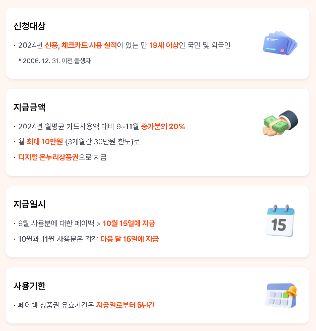 A. 만 19세 이상(2006년 12월 31일 이전 출생자)이고, 2024년에 신용·체크카드 사용 실적이 있는 사람이라면 모두 신청할 수 있습니다. 외국인도 카드 사용 이력이 있으면 가능합니다.