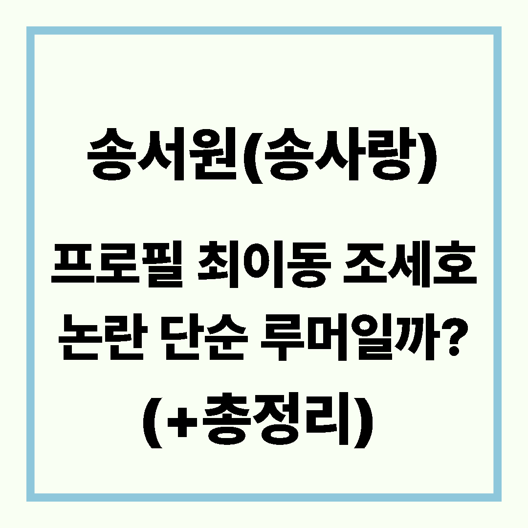 송서원(송사랑) 프로필 최이동 조세호 논란 단순 루머일까?(+총정리)패션 뷰티 건강 다이어트/생활꿀팁 일상 소식 2025. 12. 12. 14:53반응형