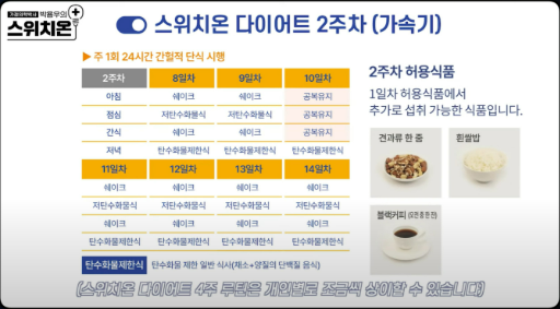 스위치온 다이어트는 4주간 체계적으로 진행되는 프로그램으로, 단백질 쉐이크 중심 식단으로 시작해 체내 지방 대사 스위치를 켜는 것을 목표로 합니다.