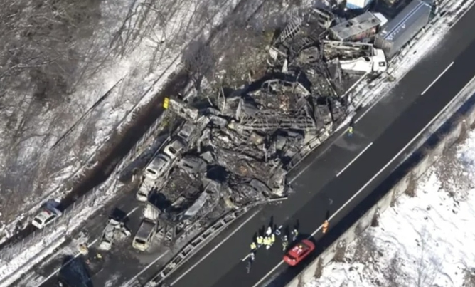 일본 군마현 고속도로에서 67중 추돌 사고 발생!