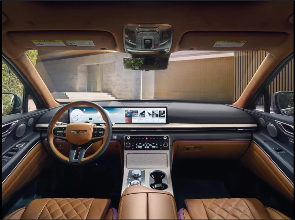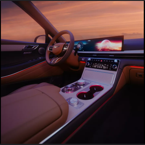 GV80은 제네시스 SUV 중에서도 실내 고급화 수준이 높은 모델입니다. 하이브리드 모델에서도 기존 구성 대부분이 유지될 것으로 보이며, 일부는 전용 하이브리드 UI로 변경됩니다.