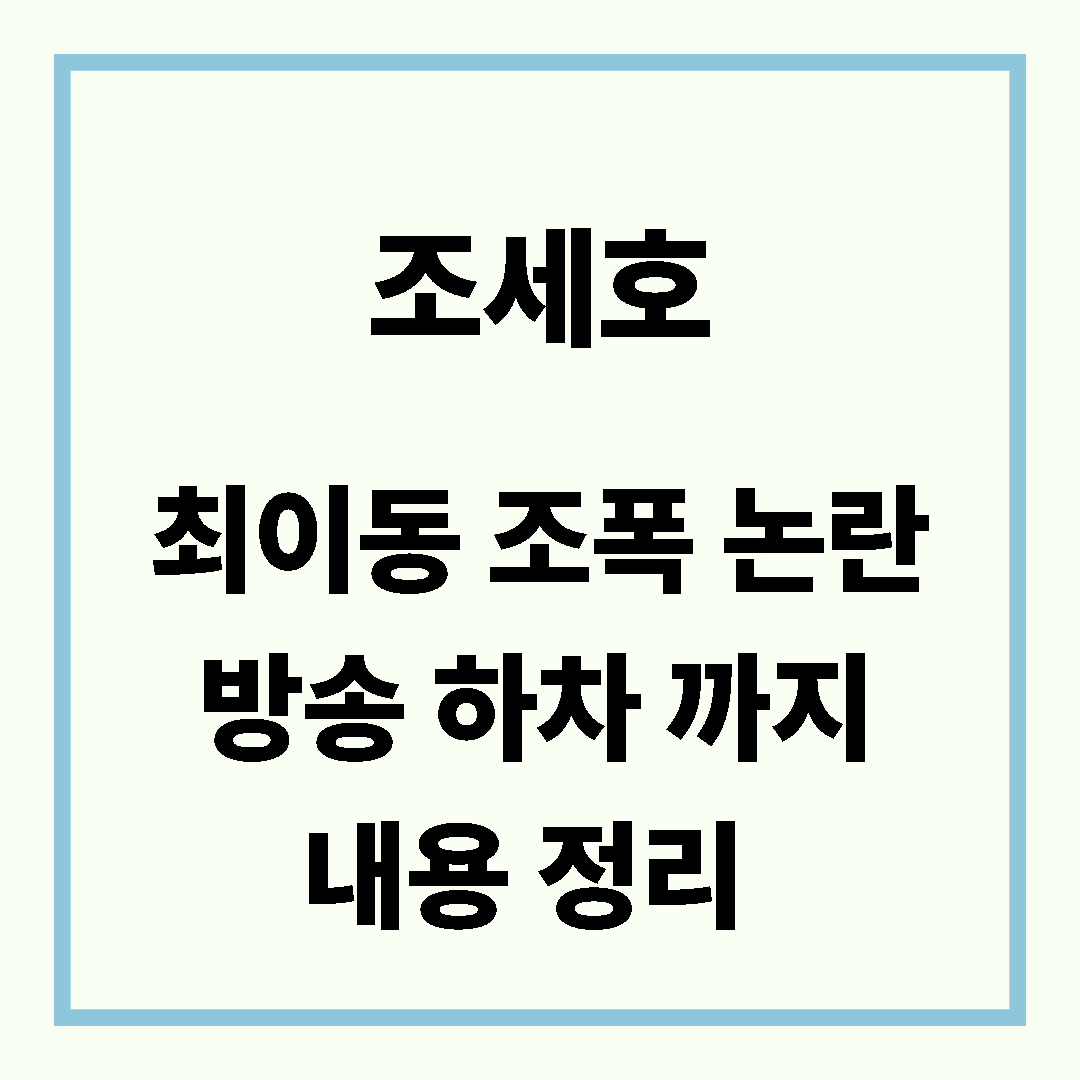 연예계가 연일 충격적인 이슈로 흔들리고 있습니다. 특히 조세호·최이동·조직폭력배(조폭) 키워드가 실시간 검색어를 장악하며 대중의 관심이 집중되고 있는데요. 단순한 루머 수준을 넘어 사회적 파장이 큰 의혹으로 번지면서 조세호는 결국 주요 프로그램에서 하차를 결정했습니다.