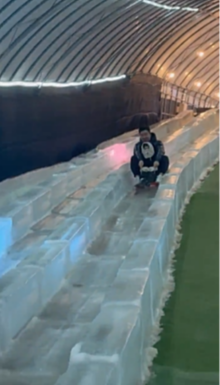 평범한 썰매장이 아니라, 얼음 자체로 만든 길을 따라 내려오는 코스인데