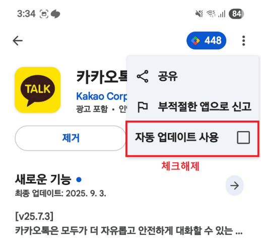 Q1. 카카오톡 업데이트를 끄면 불필요한 알림이 안 뜨나요?