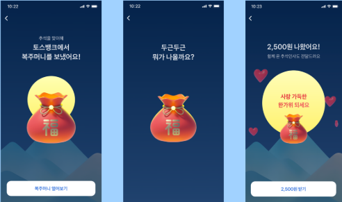토스 복주머니 이벤트는 설날, 추석 등 명절 시즌을 중심으로 진행됩니다.
