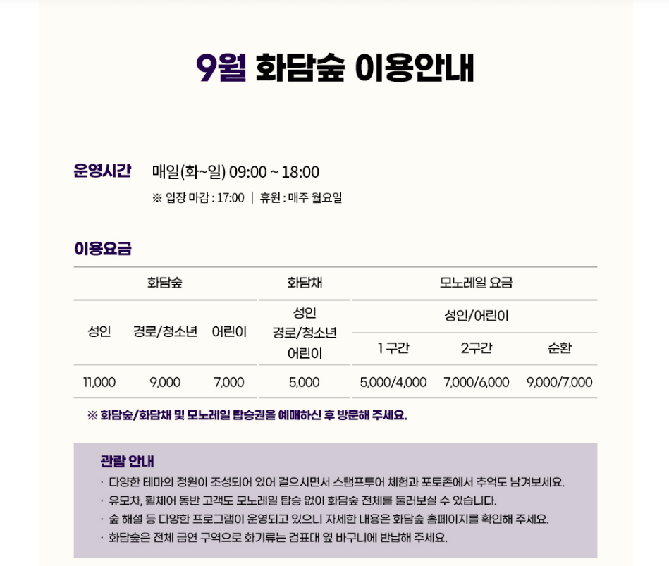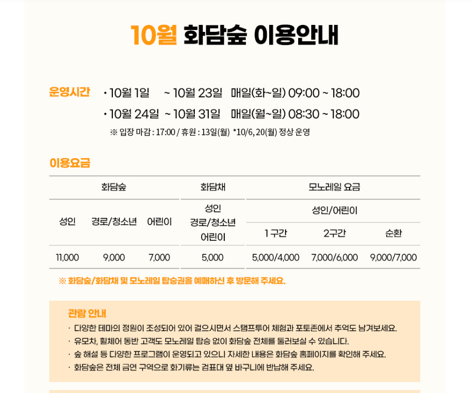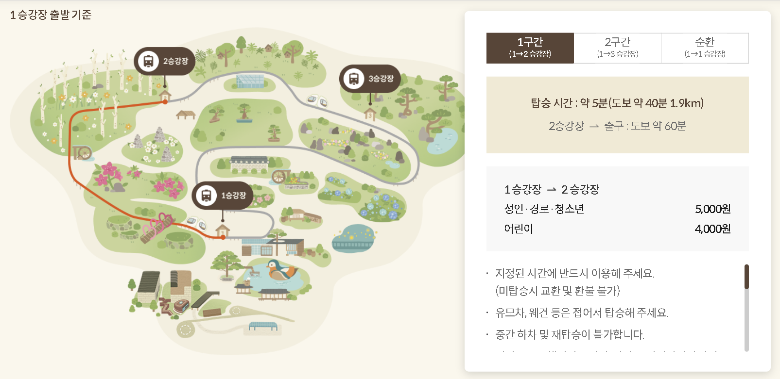 A1. 단풍 시즌과 성수기에는 100% 사전 예약제로 운영됩니다. 반드시 온라인으로 예약 후 방문해야 합니다.Q2. 모노레일은 꼭 타야 하나요?