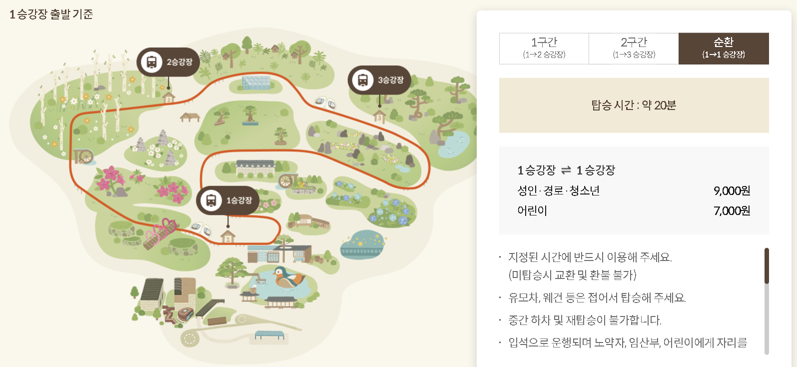 - 탑승 시간은 지정제로 운영되며, 늦으면 자동 취소될 수 있으니 시간 준수 필수