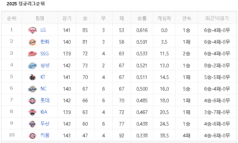 - 4위~5위 팀 와일드카드 결정전에서 누가 생존할지 초반부터 치열한 승부가 예상됩니다.